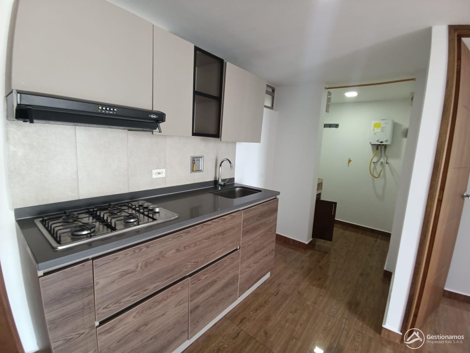 Apartamento de 62 m2, 3 alcobas, sala comedor, cocina integral, 2 baños, 3 closets, piso en cerámica, zona de ropa, parqueadero cubierto, excelentes acabados e iluminación.
