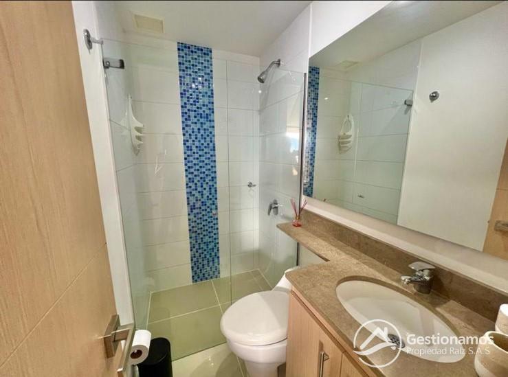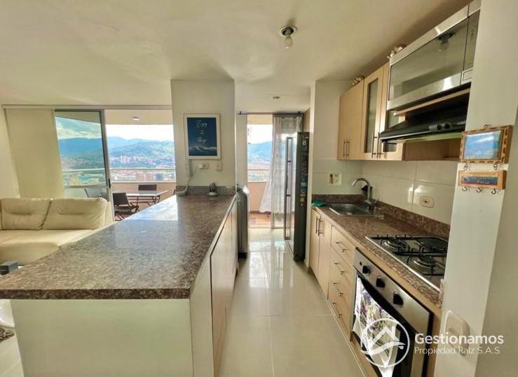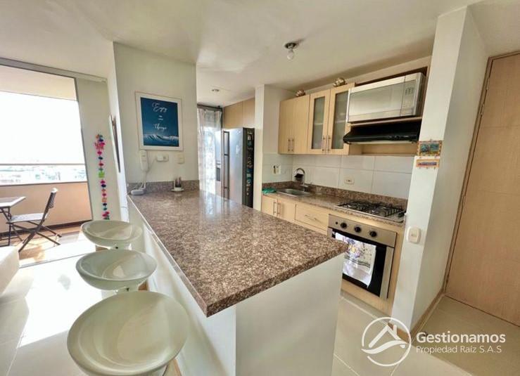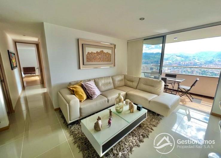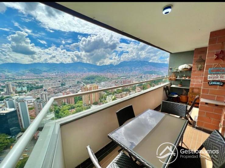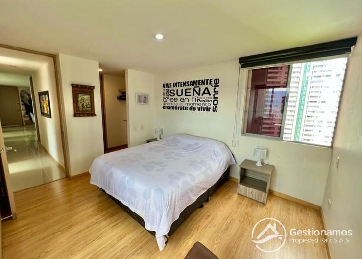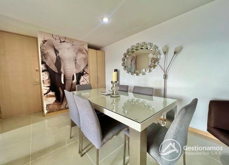 Apartamento de 98 m2, amoblado, 3 alcobas, sala comedor, cocina integral, 2 baños, 2 closets, 1 vestier,piso en porcelanato, balcones, ventanal, zona de ropa, parqueadero cubierto, cuarto útil, excelentes acabados e iluminación.