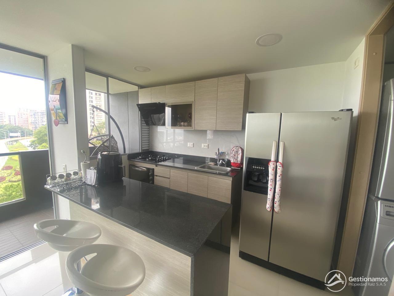 Apartamento de 70 m2, 2 alcobas, sala comedor, cocina integral, 2 baños, 1 closets, 1 vestir, piso en porcelanato, zona de ropa, parqueadero cubierto, cuarto útil, excelentes acabados e iluminación.