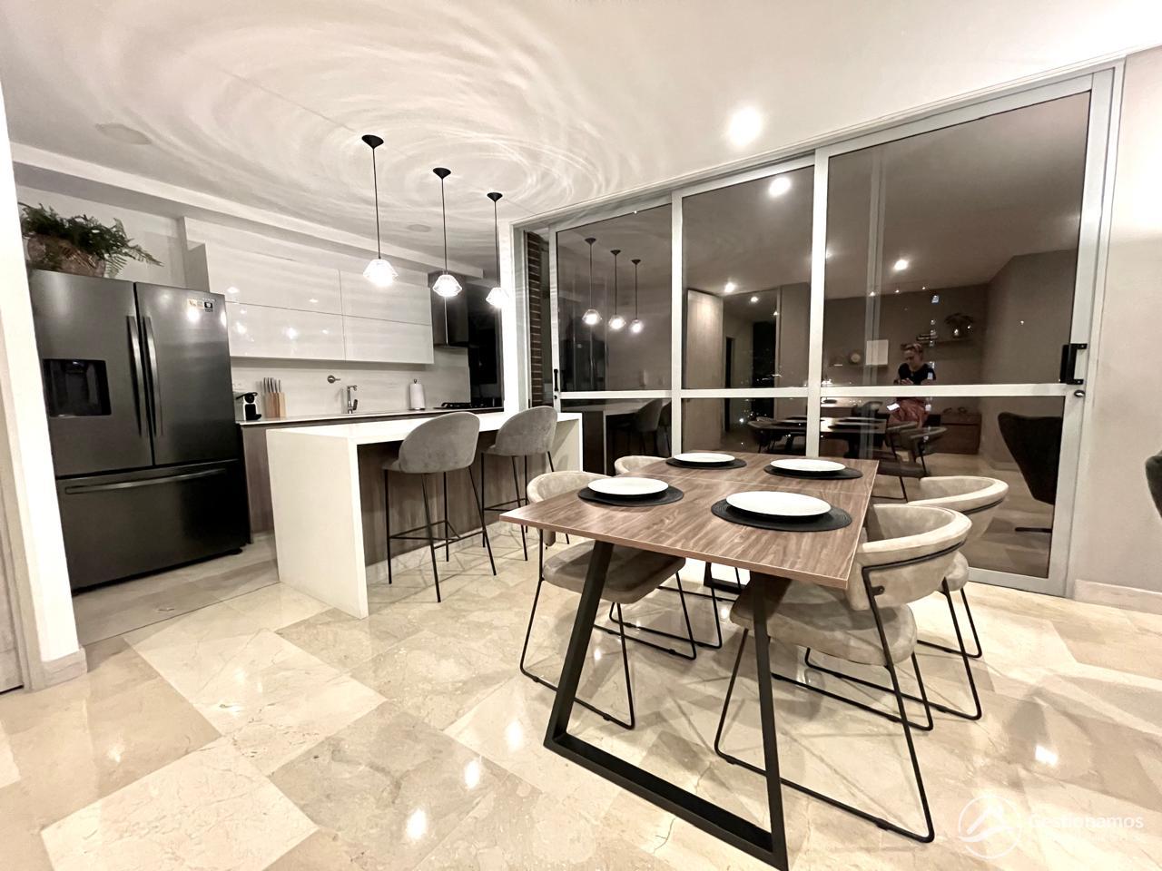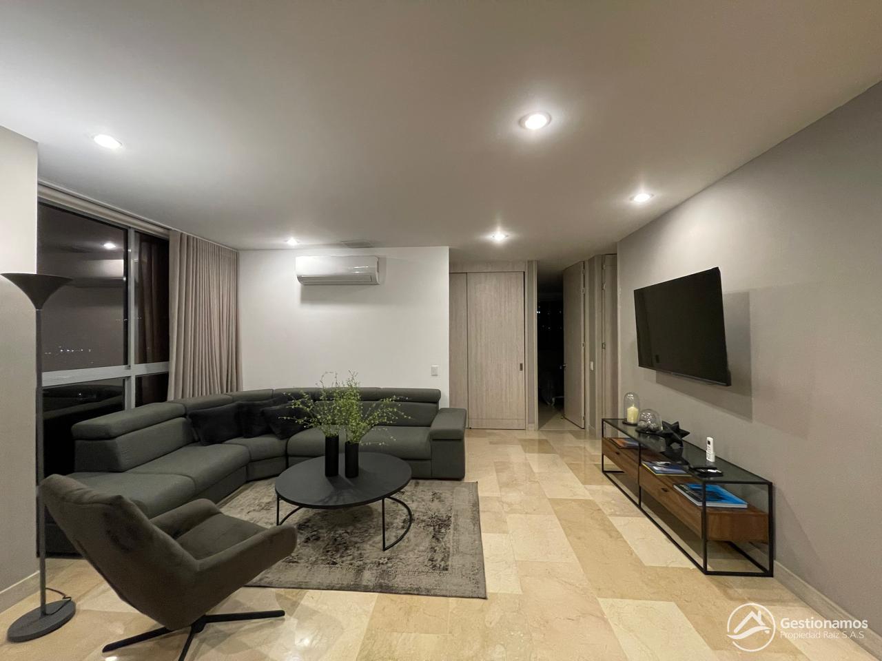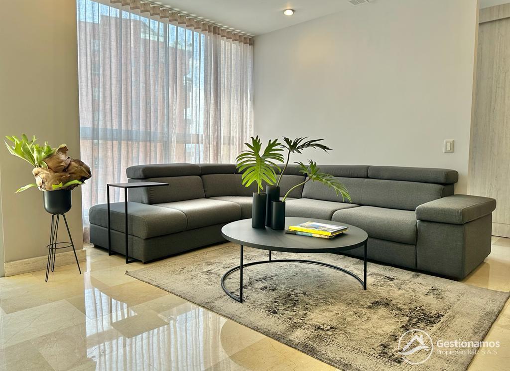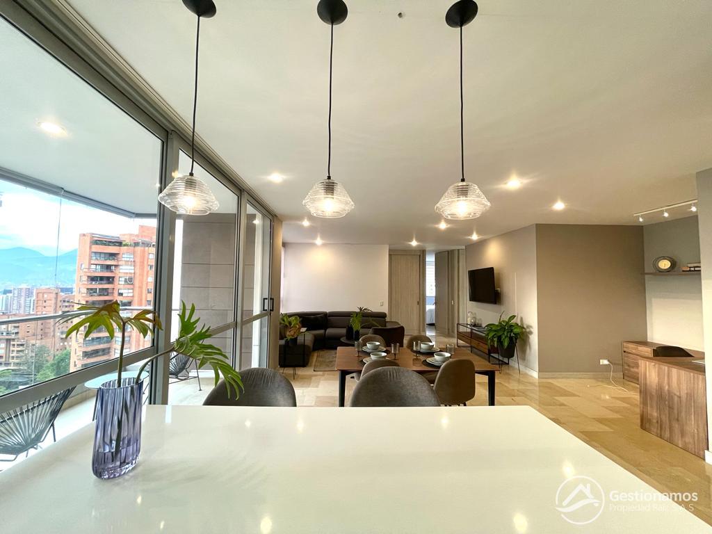 Apartamento de 130 m2,con servicios incluidos (hasta $ 500.000) , 3 alcobas más servicio, sala comedor, cocina integral, 2 baños más servicio, 2 closets, 2 vestier, piso en marmol, zona de ropa, parqueadero cubierto doble lineal, cuarto útil, excelentes acabados e iluminación.