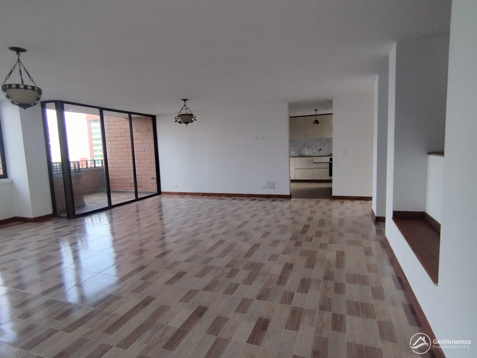 Apartamento de 150 m2, 3 alcobas más servicio, biblioteca, sala comedor, cocina integral, 3 baños más servicio, 3 closets, piso en cerámica, zona de ropa, terraza, parqueadero cubierto doble paralelo, cuarto útil, excelentes acabados e iluminación.