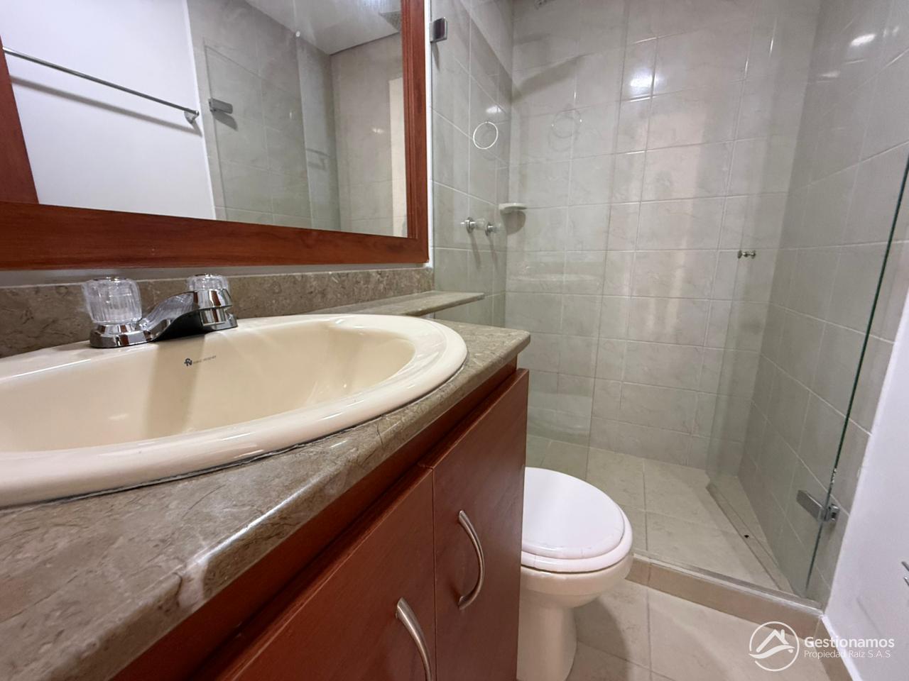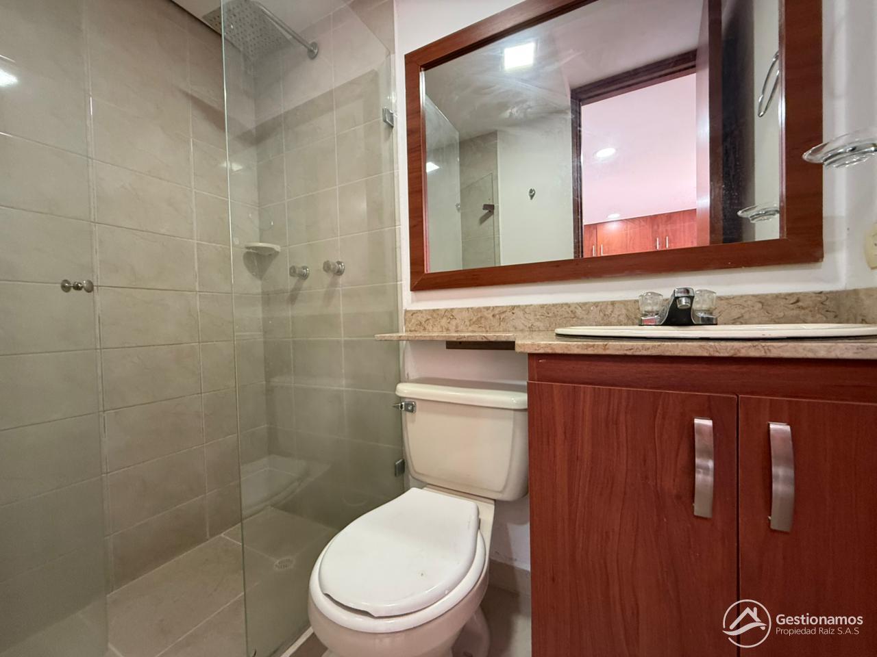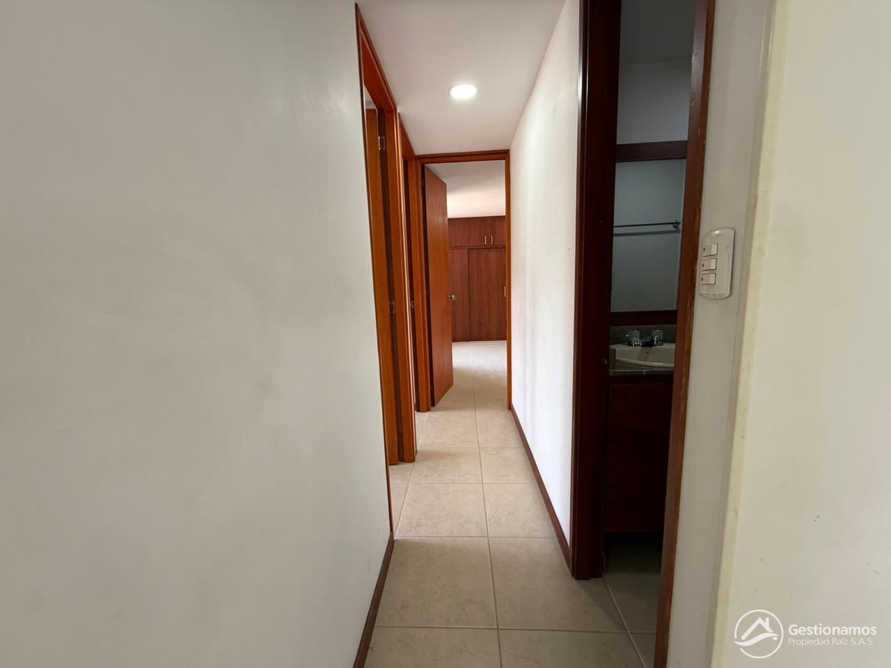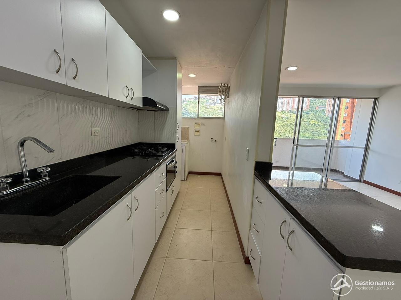 Apartamento de 70 m2, 3 alcobas, sala comedor, cocina integral, 2 baños cabinados, 2 closets, 1 vestier, piso en cerámica, zona de ropa, parqueadero cubierto, excelentes acabados e iluminación.